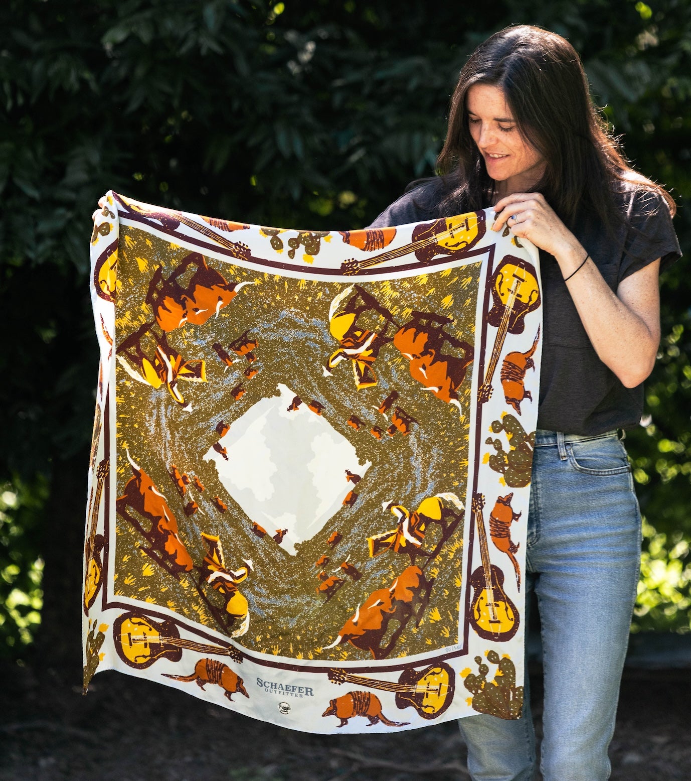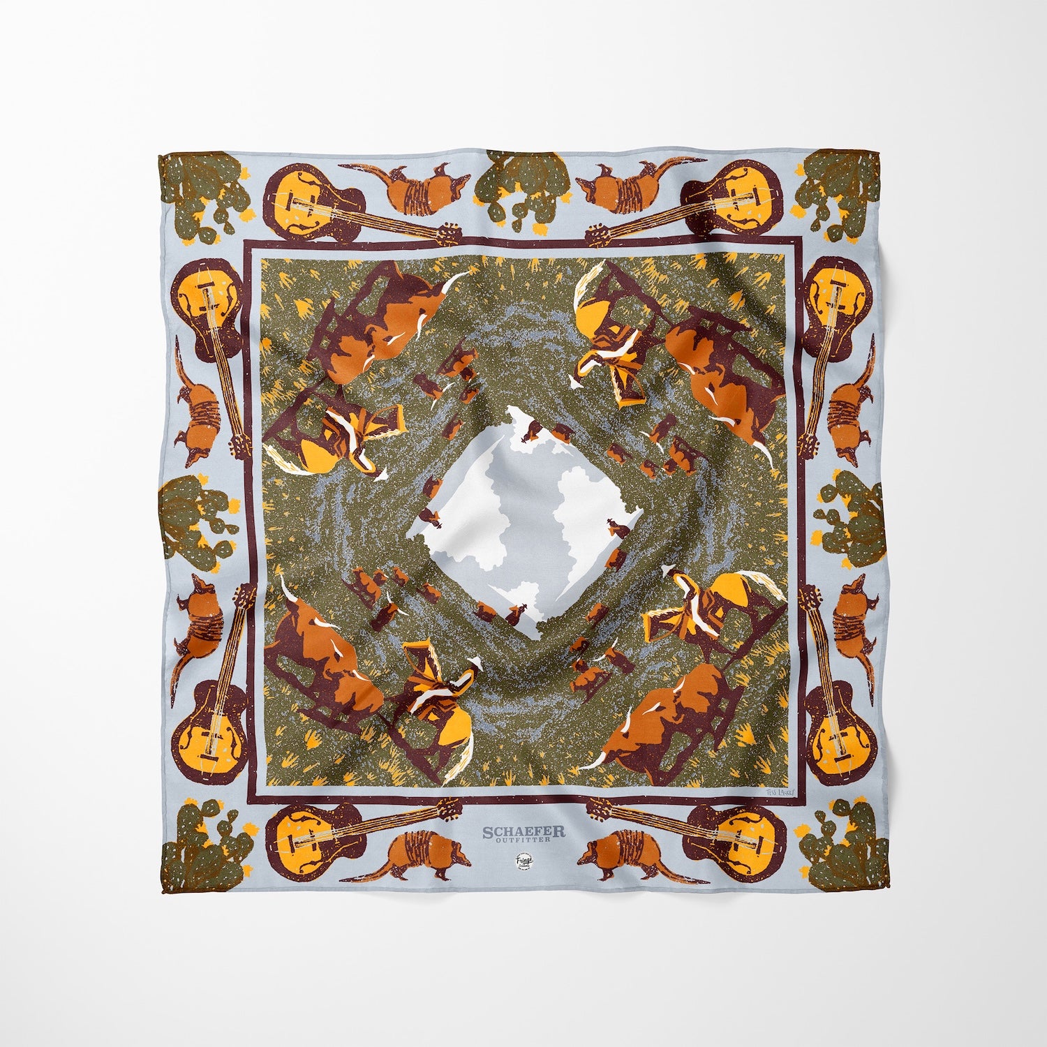 Fort Worth is home to Schaefer Outfitter's flagship store, nestled in the Stockyards off of Exchange Street. The goal for this collaboration was then to design a wild rag that embodied all things Fort Worth, Texas, along with Schaefer Outfitter's history as a brand.