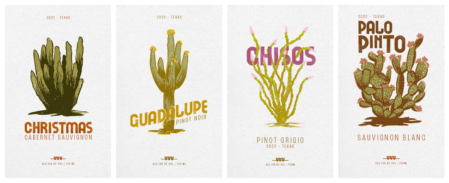 Building out seasonal wine label designs that sum up the flavor profile of these uniquely Texas wines isn't easy, especially when there's 172 million acres of the Lone Star state to pull inspiration from.