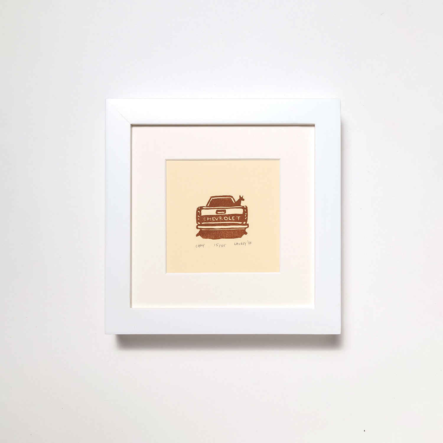 While the heeler is still with me, we've both aged since those days. I no longer drive that Chevy, but I captured the essence of it in this print.