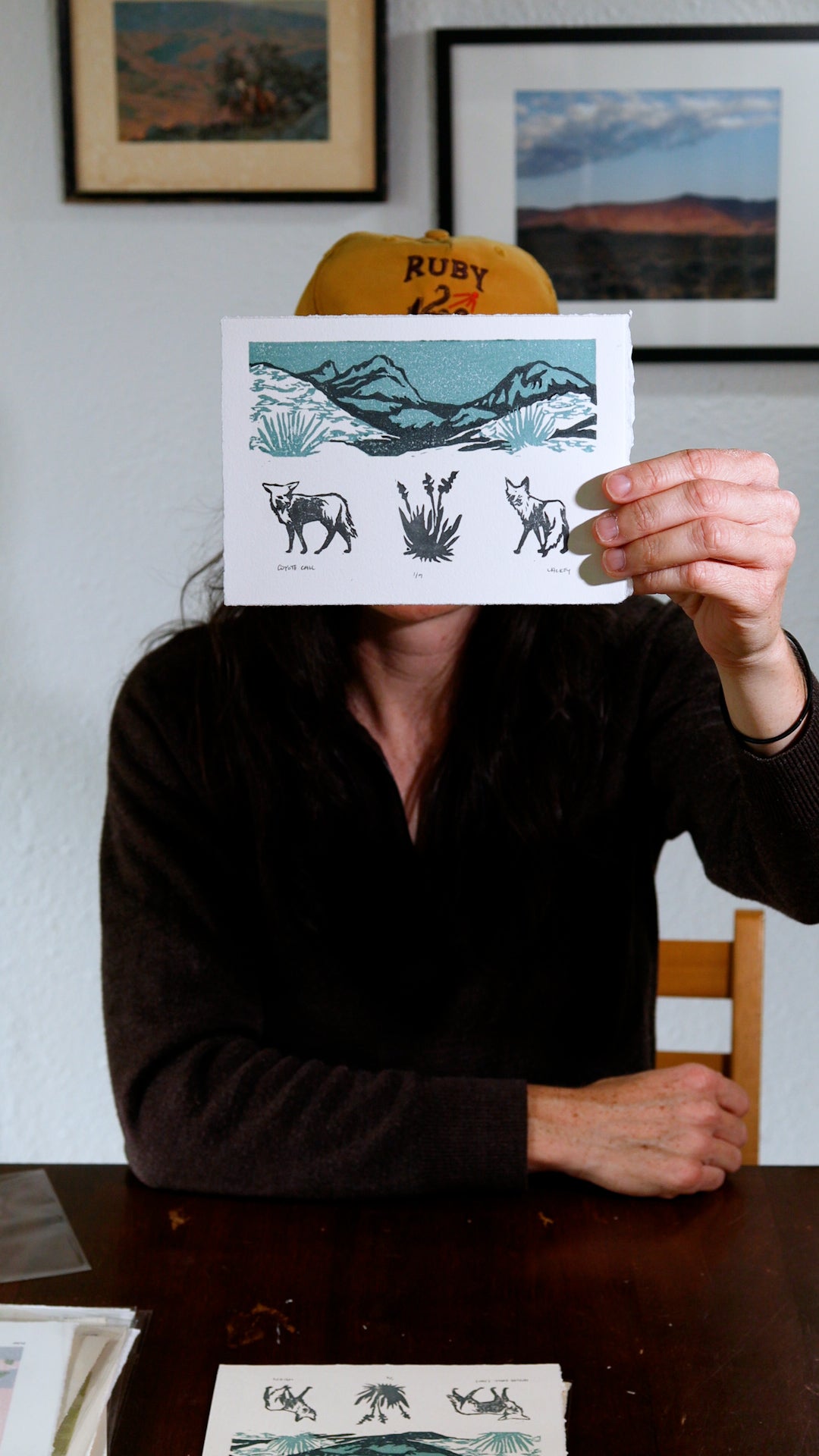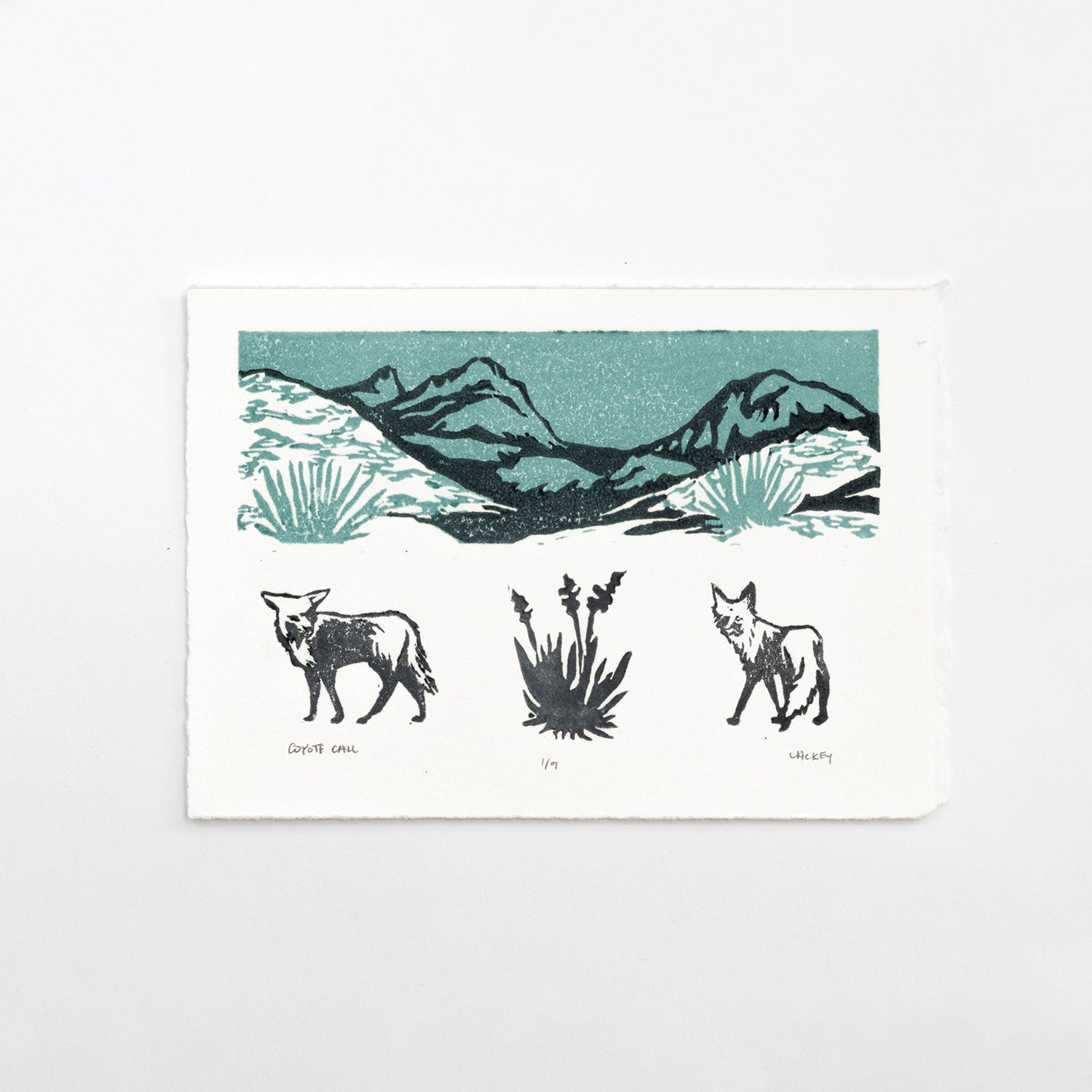 At night you can hear the coyotes call to each other, which can either be peaceful or a little unnerving when one answers only 100 feet behind you in the dark. I couldn't let this edition be complete without a print about them.