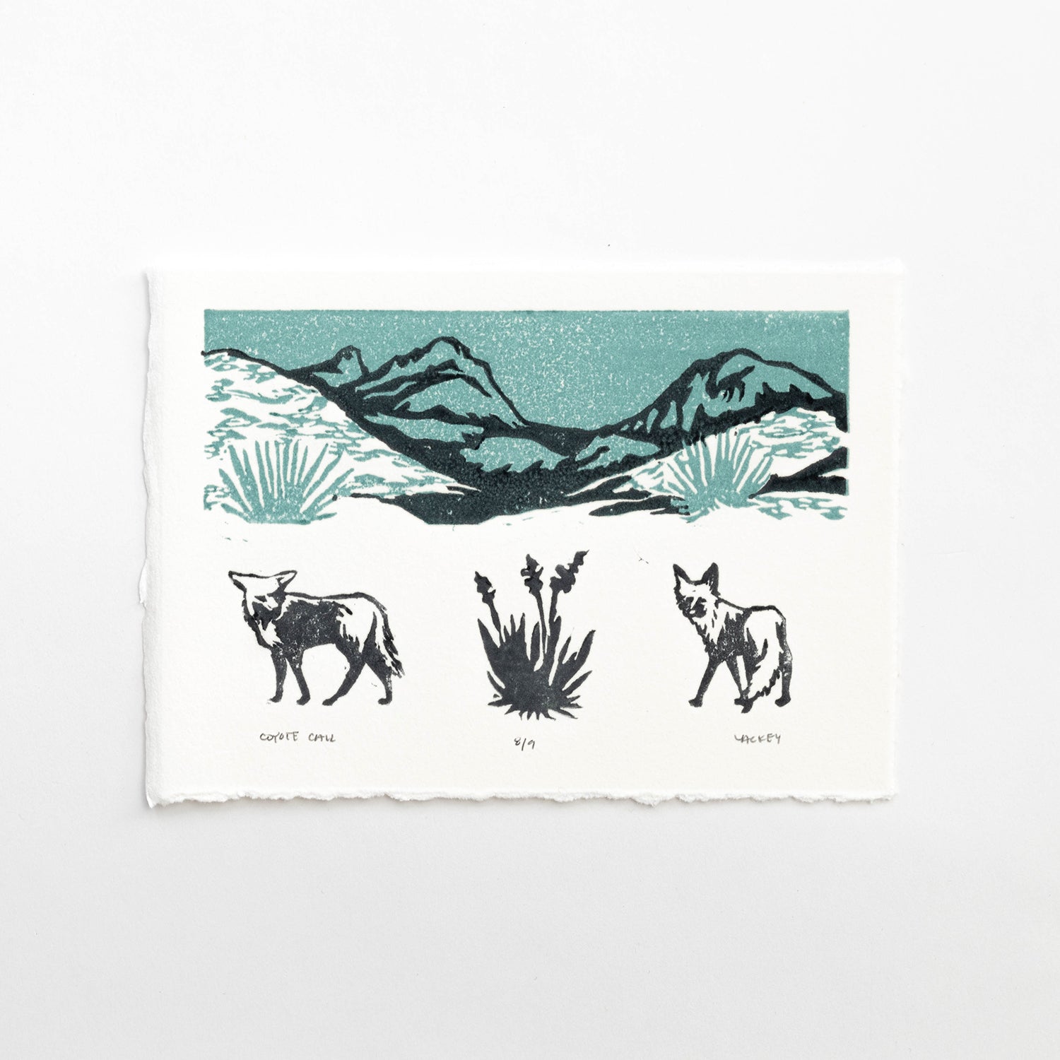 At night you can hear the coyotes call to each other, which can either be peaceful or a little unnerving when one answers only 100 feet behind you in the dark. I couldn't let this edition be complete without a print about them.