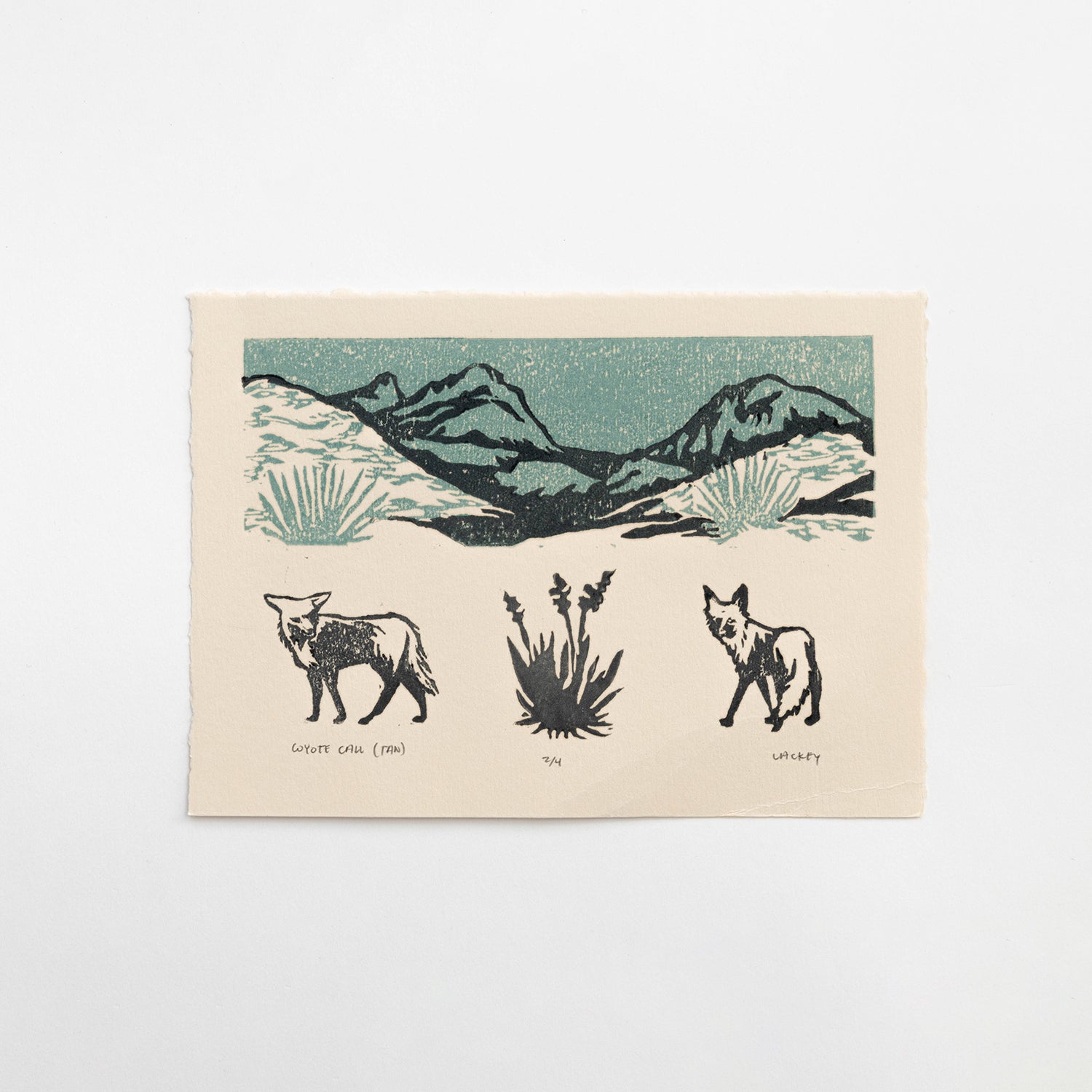 At night you can hear the coyotes call to each other, which can either be peaceful or a little unnerving when one answers only 100 feet behind you in the dark. I couldn't let this edition be complete without a print about them.