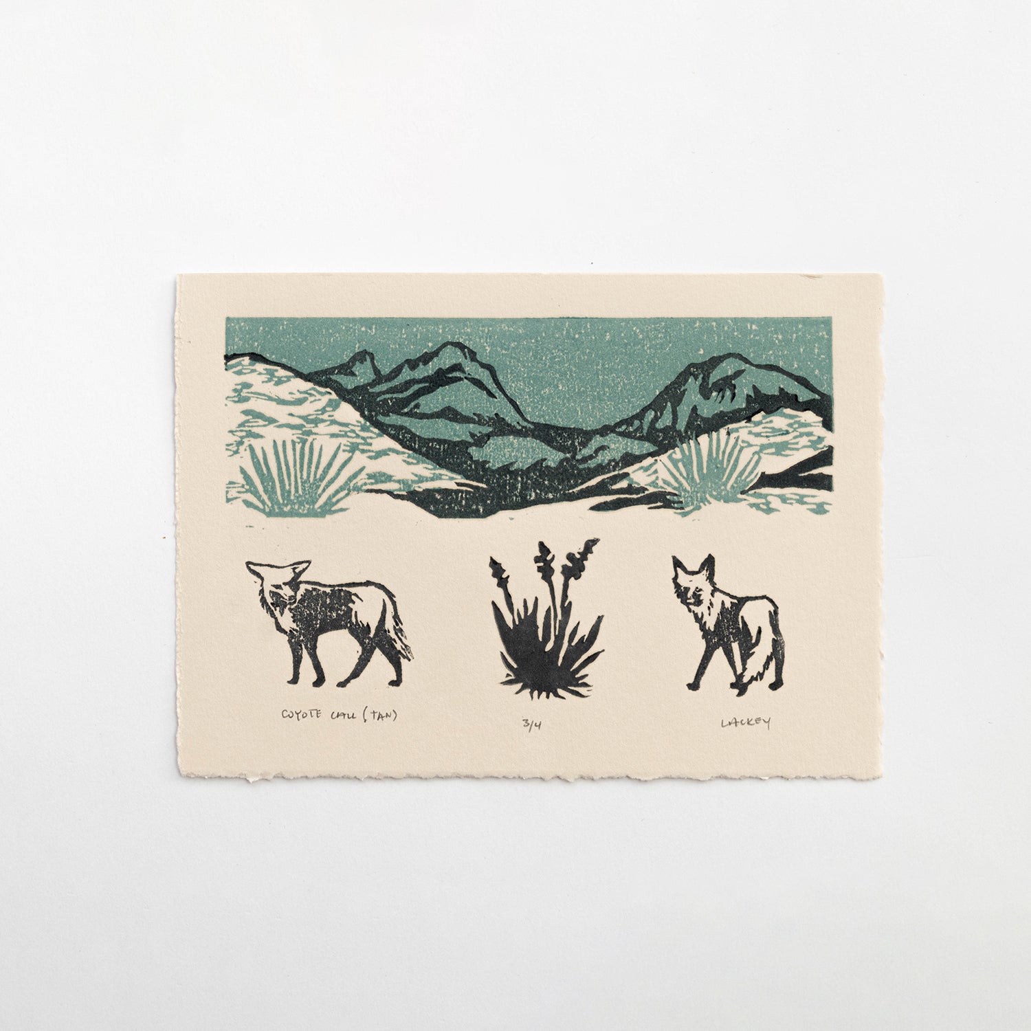 At night you can hear the coyotes call to each other, which can either be peaceful or a little unnerving when one answers only 100 feet behind you in the dark. I couldn't let this edition be complete without a print about them.