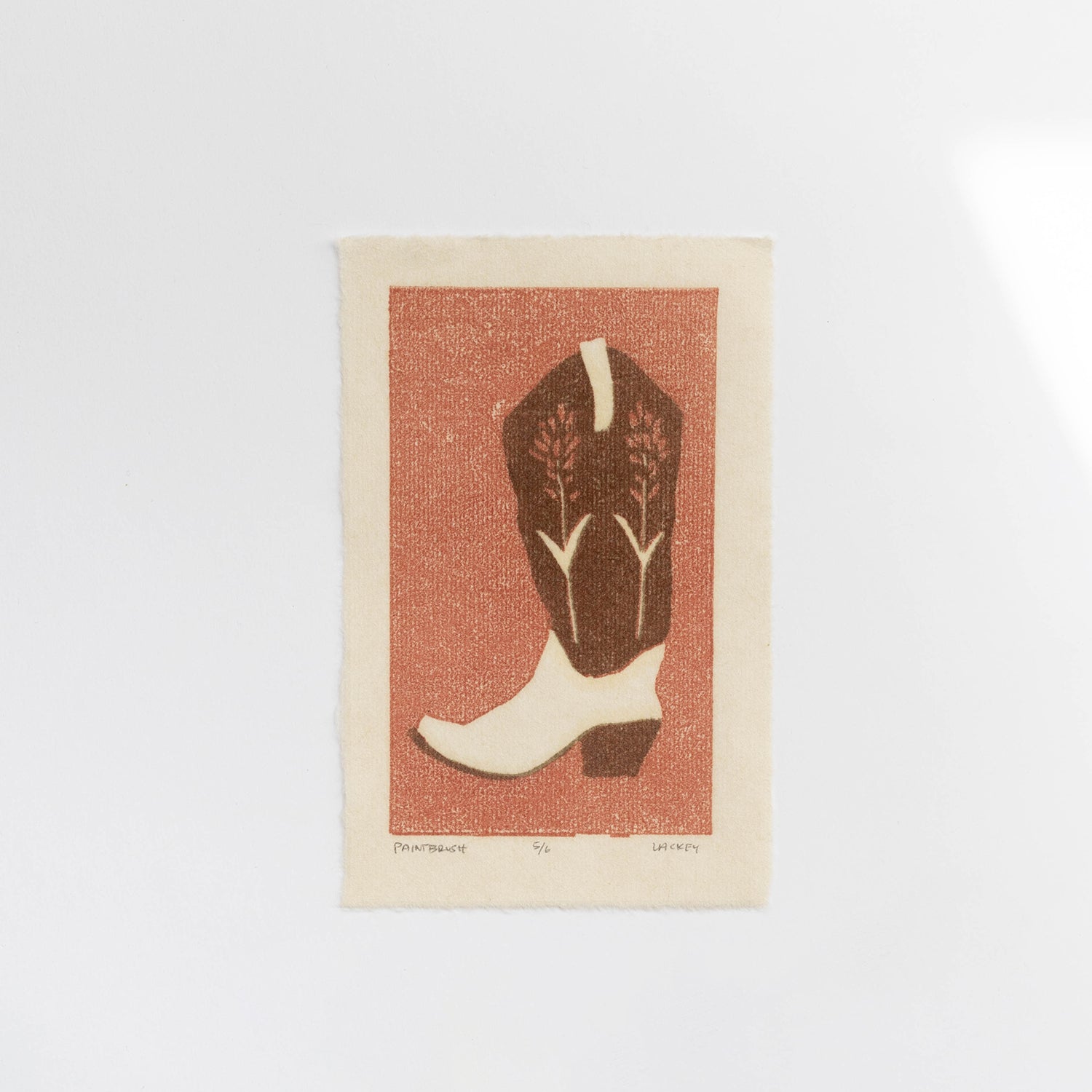 Inspired by the Indian Paintbrushes popping up in spring, I imagined what a custom pair of boots would look like with those wildflowers on the tops. Although my name's not on the books for a custom pair of cowboy boots yet, you can always dream with ink and paper.