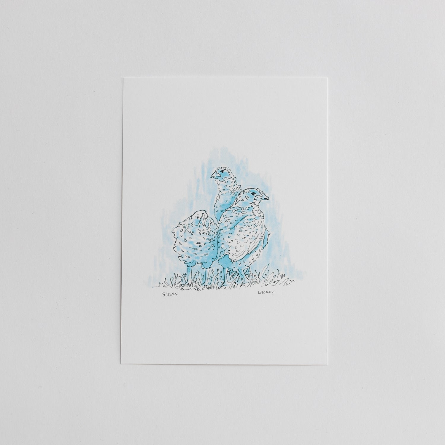 Pulled from my travel sketchbook is this ink and marker piece created while watching three hens wander through the grass.