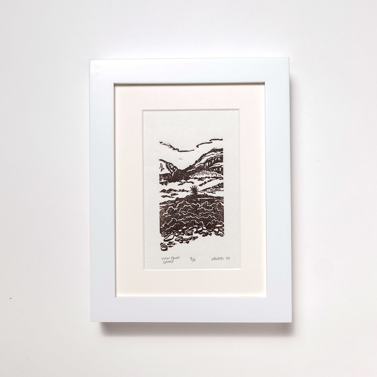 - Framed in a 5"x7" white wood frame